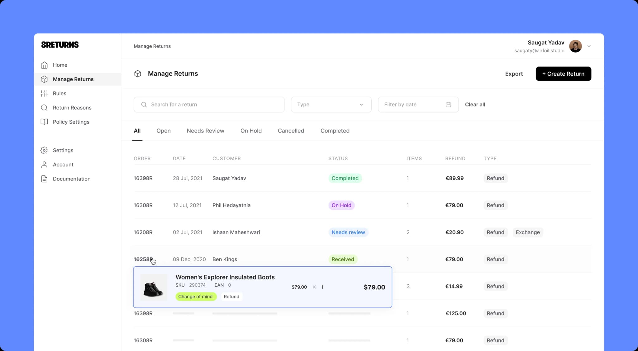 Retouren abwickeln ist nur der Anfang. 8returns hilft dir, Rückgaben zu reduzieren, Kunden zu halten und aus jeder Retoure mehr rauszuholen.
